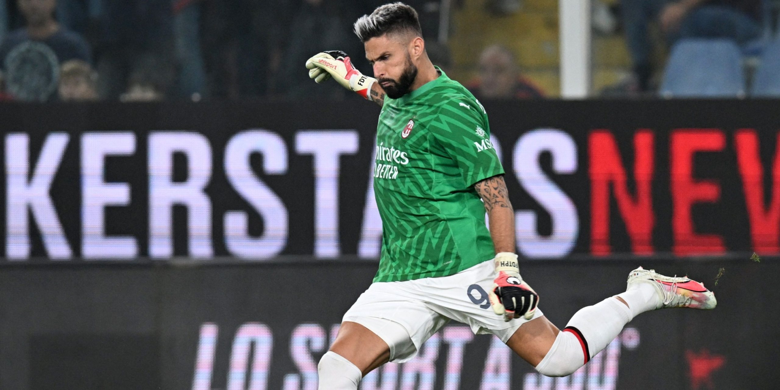 Olivier Giroud was tasked with taking Mike Maignan’s place in the AC Milan goal against Genoa in October 2023 after the shot-stopper was sent off in the match’s dying moments.